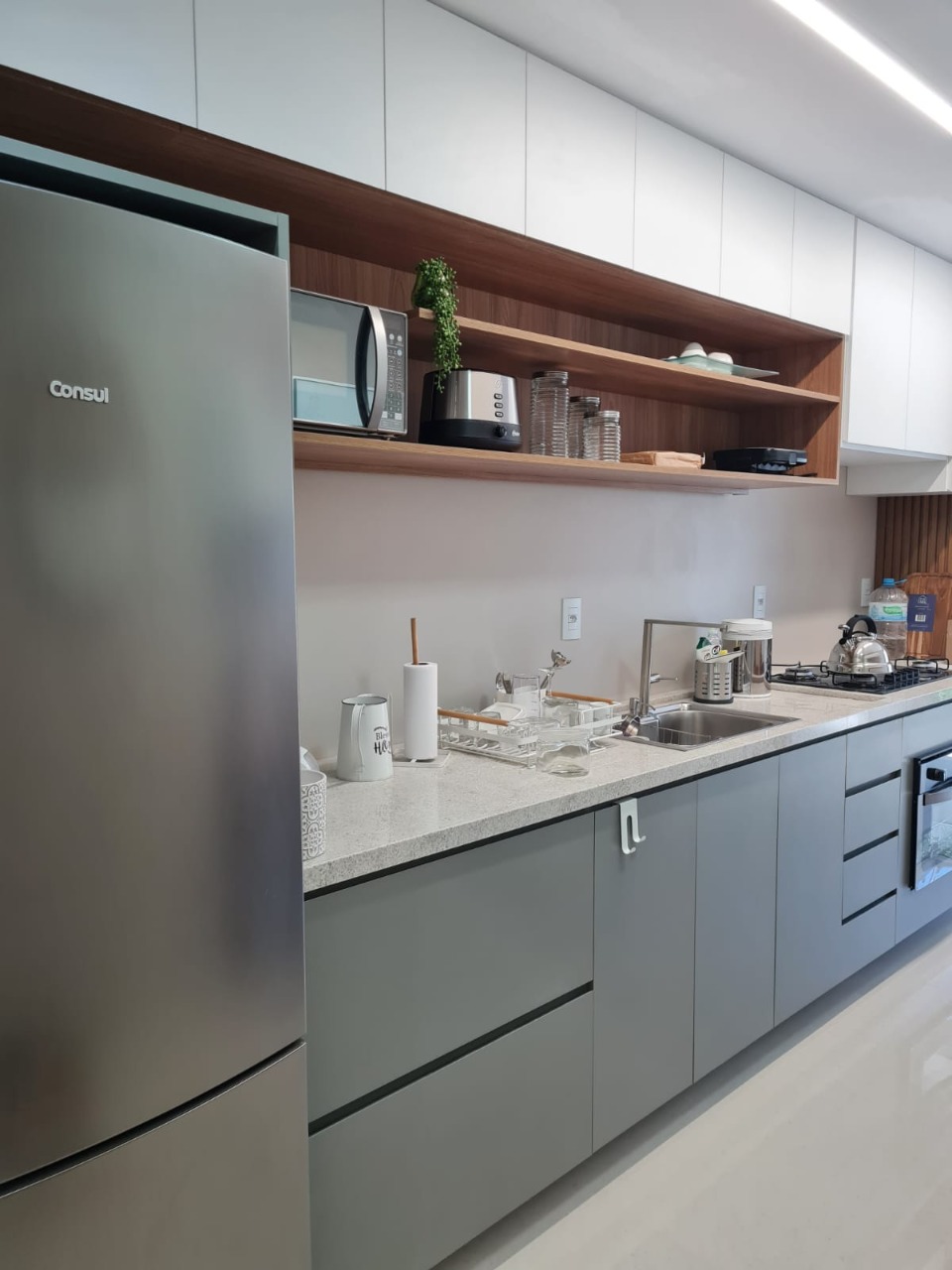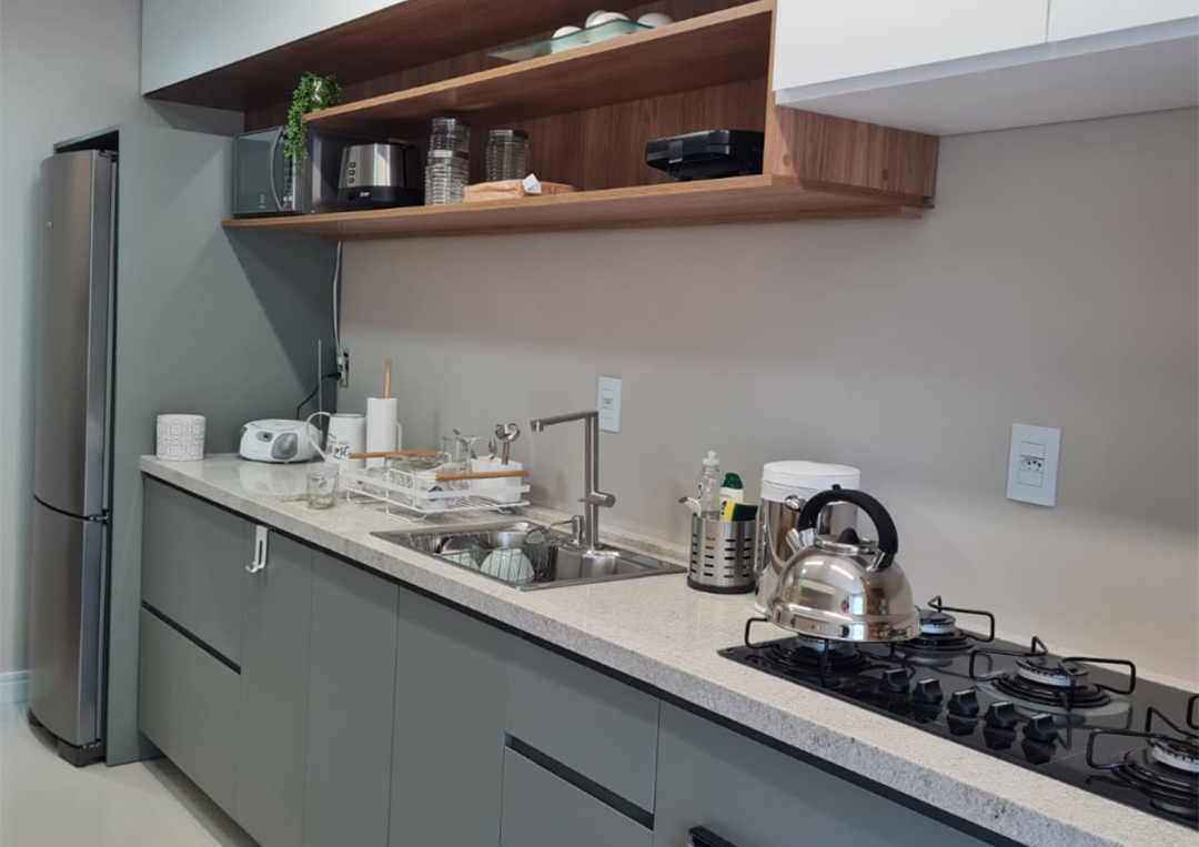 Conversamos sobre como a cozinha assumiu um papel protagonista nos novos tempos. Ela deixa de ser aquele local de “serviço” e passa a ser um local de encontro. Dei algumas sugestões sobre como ter uma cozinha funcional.